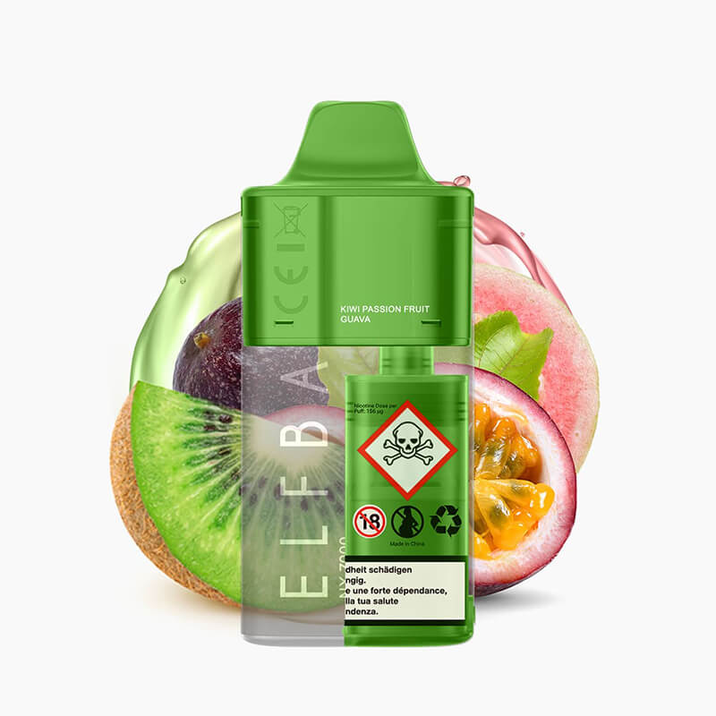 Cartouche de rechange NX 7000 Kiwi Passion Fruit Guava pour Puff rechargeable NX 7000. Une cartouche créée par Elfbar.