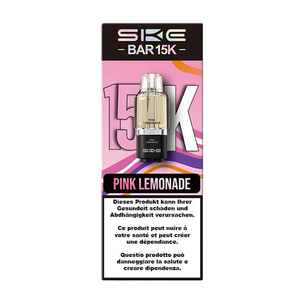 - Grâce à son système ingénieux, la Cartouche SKE Bar 15K Pink Lemonade se glisse en quelques secondes dans la batterie et vous permet ainsi de remplacer facilement le pod et de varier les plaisirs gustatifs durant la journée.