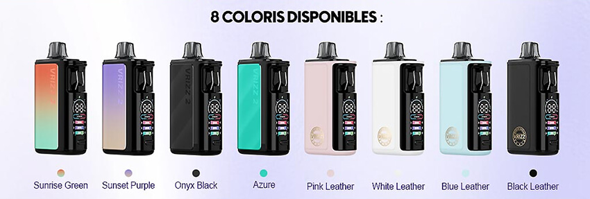 Kit Pod Vrizz 2 de Voopoo. Un design compact, un réservoir XXL de 15ml et un système de double résistances pour maximiser les saveurs. Le Kit Vrizz 2 offre une double expérience de vape : MTL (inhalation indirecte) et RDL (inhalation directe réduite). Il propose une batterie intégrée de 1350mAh, une puissance de 30W et un réservoir de 15ml. Le Vrizz 2 fonctionne avec les cartouches Vrizz V2, elles disposent de résistances intégrées et fournisent des saveurs authentiques. Dimensions : 10.1cm x 5cm x 2.5cm. Découvrez nos collections de e-liquides, avec et sans nicotine.