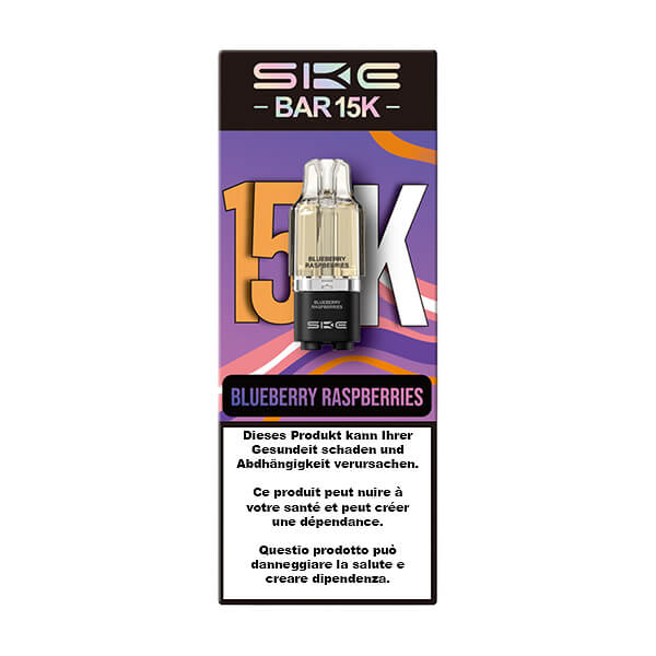 - Die SKE Bar 15K Blueberry Raspberries Patrone bietet etwa 6000 Züge.