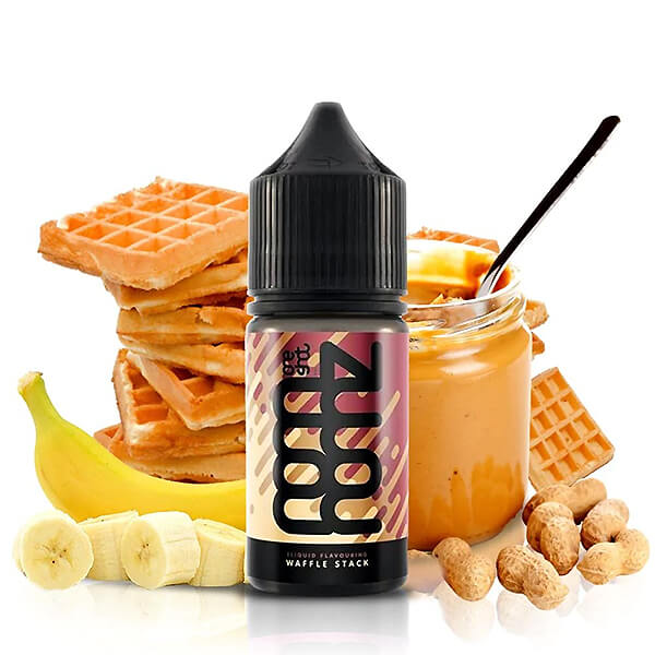 Konzentrat Waffle Stack von Nom Nomz. Ein Konzentrat für DIY-E-Liquid. Eine Gourmetwaffel, die mit Erdnussbutter und zartschmelzenden Bananenstücken überzogen ist. Ein Lebensmittelaroma, das in Irland von Nom Nomz kreiert wurde. Entdecken Sie unsere gesamte DIY-Kollektion.