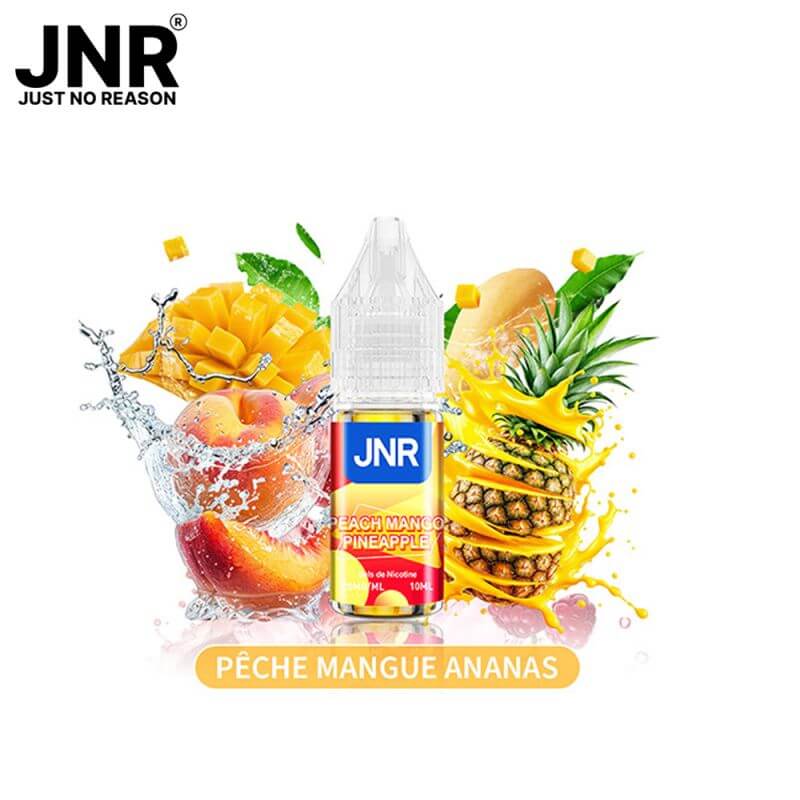 E-Liquid Peach Mango Pineapple von JNR, mit Nikotinsalzen. Eine köstliche Mischung aus Pfirsichen, Mangos und Ananas. Unwiderstehlich ! Peach Mango Pineapple e-Liquid wird mit einem PG50/VG50 Gehalt angeboten. Inhalt : 10 ml.