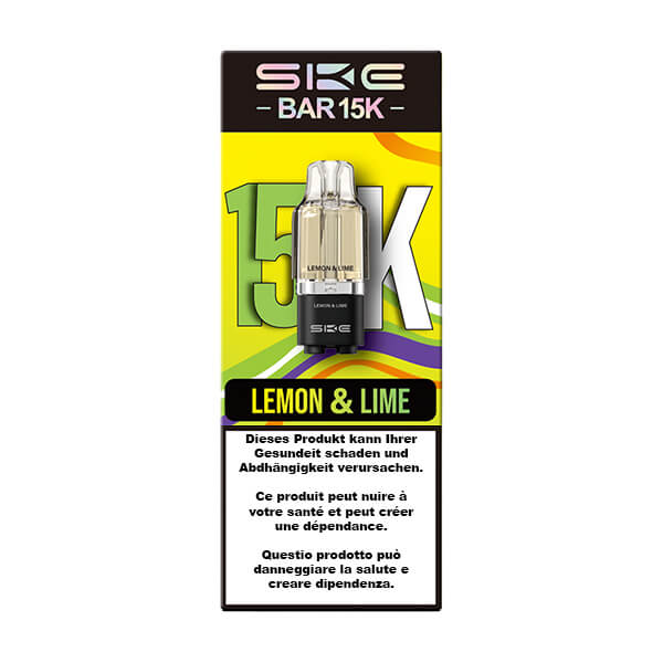 - Die SKE Bar 15K Lemon & Lime Patrone bietet etwa 6000 Züge.