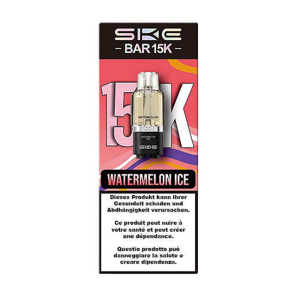 - Die SKE Bar 15K Watermelon Ice Patrone bietet etwa 6000 Züge.