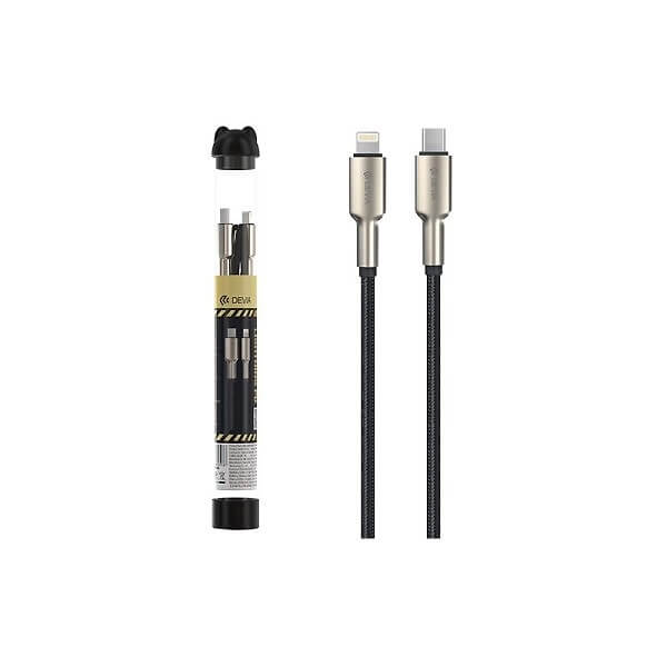 USB-C-zu-Lightning-Ladekabel von Devia. Damit können Sie Ihre Geräte mit Lightning-Anschluss aufladen. Dimensionen : 1m.