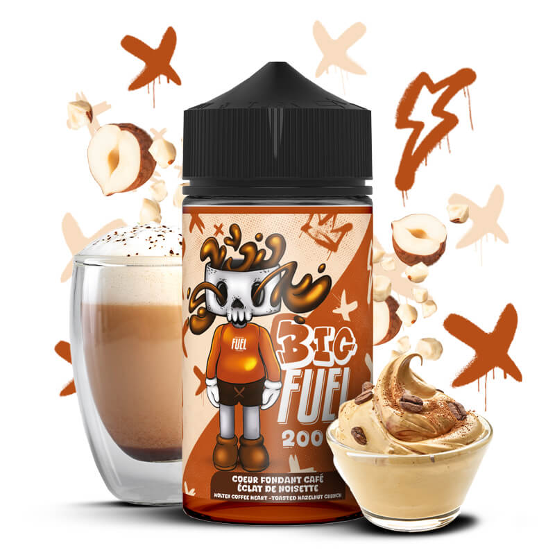 Le e liquide Coeur Fondant Café Eclat de Noisette Big Fuel de Maison Fuel est proposé en 0mg, en 200ml.