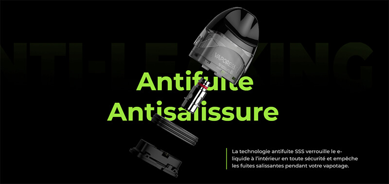 Le Kit Zero S de Vaporesso dispose d'un système novateur anti fuites ultra performant.
